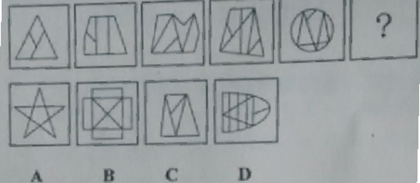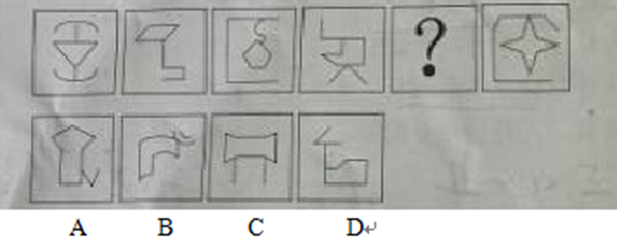 73.【解析】D。本题整体观察图形没有规律,整体观察没规律可以观察局部。可以看到一组图形中,局部看,图形内部直线数量上呈现:2,3,4,5,6,?的规律,故应补入内部直线数为7的图形,答案为D。