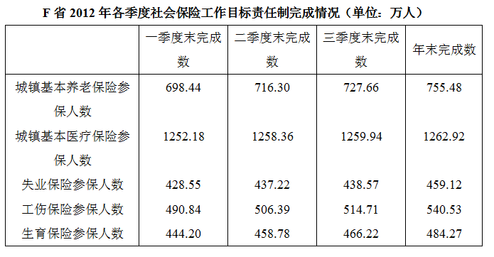 108.【解析】A。增速最快的保险项目可以简单计算出只有工伤险增长率大于10%,其余都小于10%,其目标任务为504;而增速最低的可看出是城镇基本医疗保险人数为1260,倍数为504/1260<1/2,答案选A。