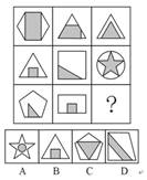 81.D【解析】本题考查重构推理,A项中黑色正方形的位置应该在右上方,B项中右面中黑色三角形的位置出现错误,C项中圆形的位置应为五角星。因此,本题答案为D选项。