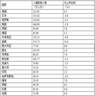 104.C【解析】2012年美洲以及美国和加拿大的入境旅游人数增长率都很小,故总量和2011年很接近。则可得317.95-211.81-70.83≈35,只有C与之很接近。因此,本题选c.