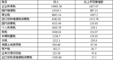 ②下半年税收总收入的增长趋势在材料中没有提到,该说法不能得到;