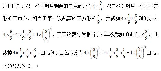 年龄问题。9年前全家年龄为49岁,而今年全家年龄为74岁每个人长9岁,49+27=76说明9年前小强未出生,小强的爸爸比小强妈妈大3岁,则妈妈9年前为23岁,今年32岁。因此,本题答案为A。