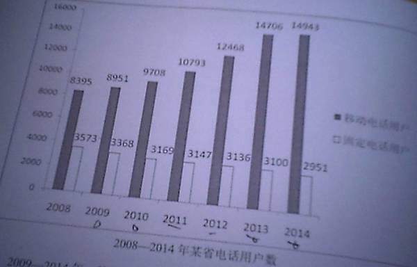 89.2009-2014年,电话用户数与上年差距最大的年份是( )。