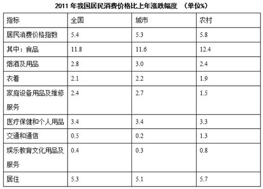 A.我国城市居民消费价格涨幅大于农村