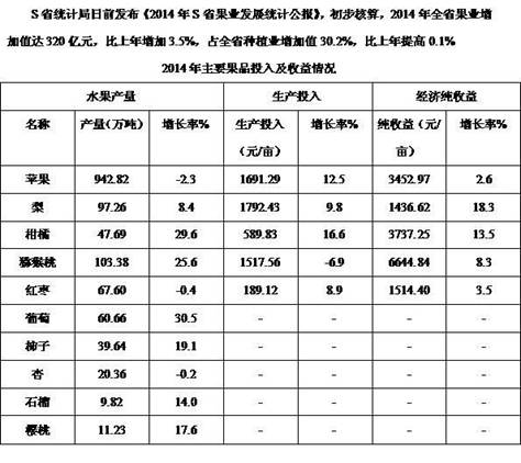 D.2014年主要果品中,收益与投入比值最大的是柑橘