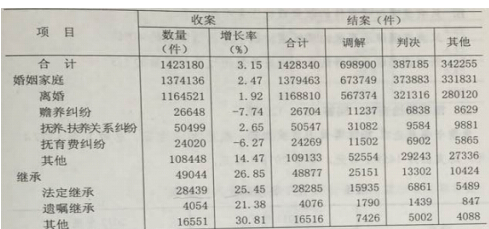 2010年人民法院审理婚姻家庭,继承一审案件收结案情况