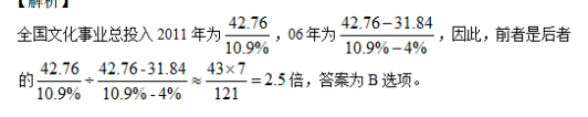 【解析】全国群众文化投入=财政拨款÷财政拨款占全国群众文化投入的比重