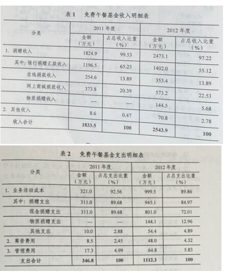 免费午餐基金自2011年4月正式启动,截止2012年底,总收入为4377.4万元,总支出为1459.1万元,结余2918.3万元