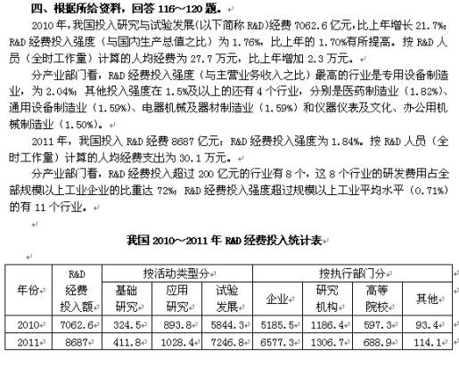 117.从活动类型看,2011年研究经费比上年增加额最多的和