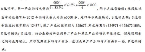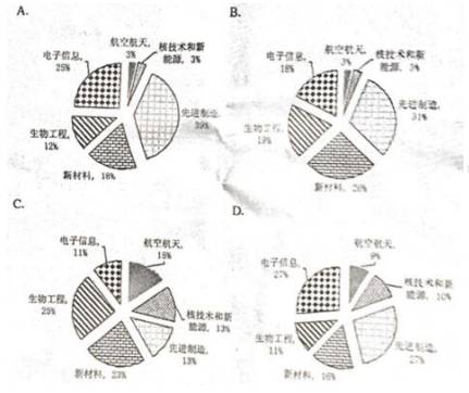 【解析】 产值最高的是先进制造领域的1306.7亿,而工业总产值为6622.2,相除接近于1/5,也就是20%。选C选项。