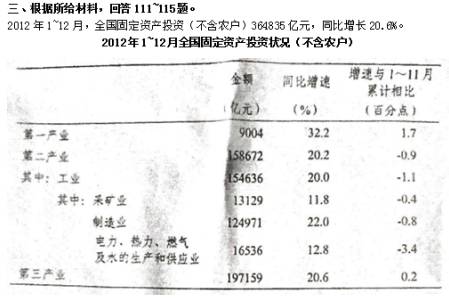 115.关于2012年全国固定资产投资状况,能够从上述资料中推出的是: