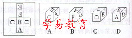 (3)下列两题中,右图的四个图形,只有一个是由左面的纸板向外折叠而成。请选出正确的一个。