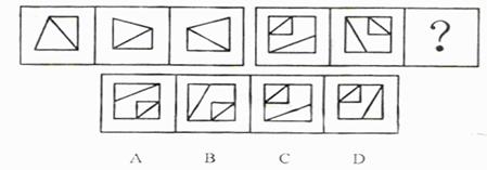 77.从所给的四个选项中,选择最合适的一个填入问号处,使之呈现一定的规律性。( D )