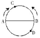 70. 如下图所示,AB两点是圆形体育场直径的两端,两人从AB点同时出发,沿环形跑道相向匀速而行,他们在距A点弧形距离80米处的C点第一次相遇,接着又在距B点弧形距离60米处的D点第二次相遇,问这个圆形体育场的周长是多少米?
