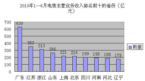 D.2010年1~6月,我国南方地区的电信主营业务收入普遍高于北方地区