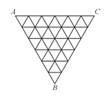 61.如图,某三角形展览馆由36个正三角形展室组成,每两个相邻展室(指有公共边的小三角形)都有门相通,若某参观不愿返回已参观过的展室(通过每个房间至少一次)那么他至多能参观多少个展室?