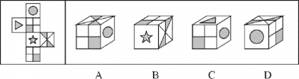 75.左边给定的是纸盒的外表面,下列哪一项能由它折叠而成: