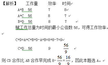 58.【解析】C。连接AC,由于E为AD的中点,有AE=ED,故三角形ACE的面积等于三角形CDE的面积,又因为甲、乙两部分的面积之比是15:7,故三角形CDE的面积与三角形ABC的面积之比为7:8,而三角形ABC的面积等于1/2×AB×h,其中h为梯形的高,而CDE的面积等于1/2×CD×1/2×h,故AB:CD=4:7,故答案选C