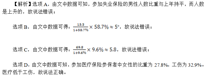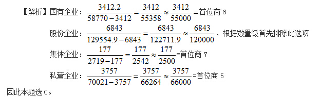 105.【解析】D。A选项,材料中股份制利润为6843.2,明显超过一半,错误;B选项,观察材料股份和私营企业都高于平均水平;C选项,11740.1÷3小于4000,此选项错误;D选项,利润的增长率高于主营收入的增长率,所以利润率高于去年,正确。因此本题选D。