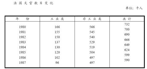 B.1980年到1987年,法国非工业类文官逐年下降