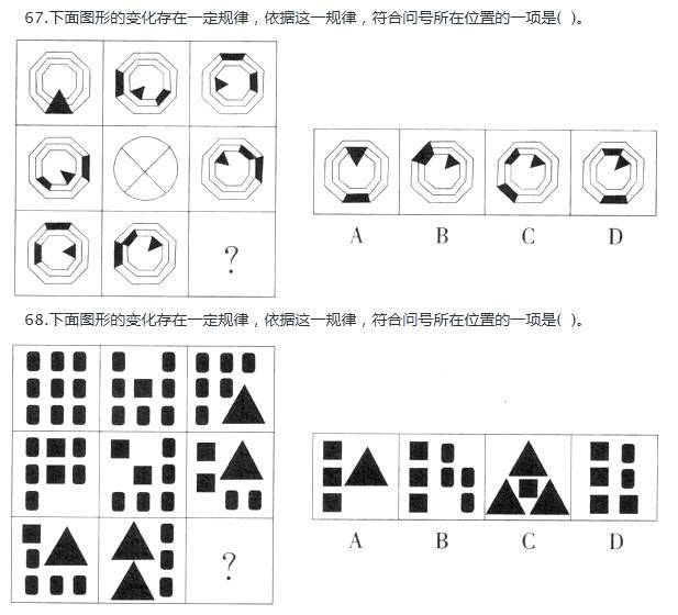 八、图形推理:请依据每道题目前的说明选择最合适的选项(共8题,每题1分.)