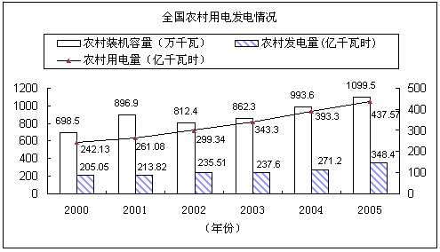 2、根据上图,下列关于我国农村用电发电情况的表述,错误的一项是( )。