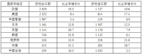 136.2007年我国大陆地区对美国的货物进出口总额为( )。