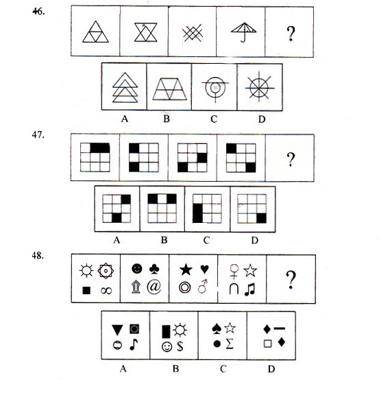 一、 图形推理。请从所给的四个选项中,选择最合适的一个填入问号处,使之呈现一定的规律性。