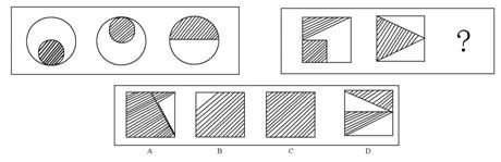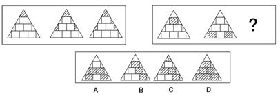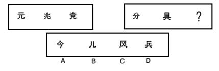 【解答】正确答案为D。因为只有D能使两套图形具有相似性,仅仅元素不同,一个是半圆,一个是半个正方形,但两组图形中元素的排列规律完全相同。