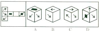 55. 将下面左图进行折叠后,得到的图形是: