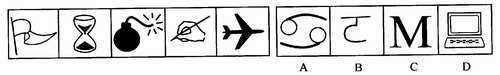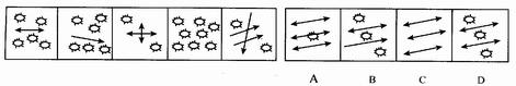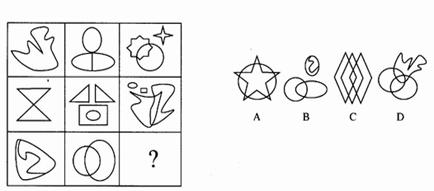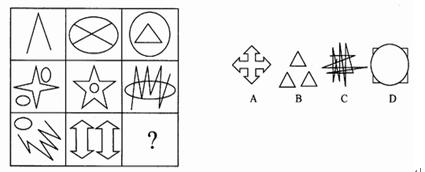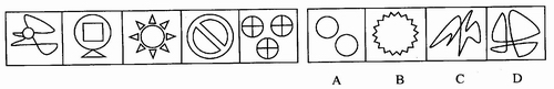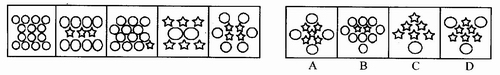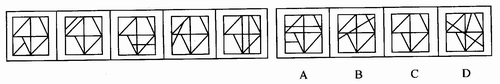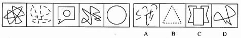 (一)每道题在左边的题干中给出一套图,其中包括五个图,这五个图形呈现一定的规律性。在右边给出一套图,其中有四个图,从中选出唯一的一项作为保持左边五个图形规律性的第六个图。