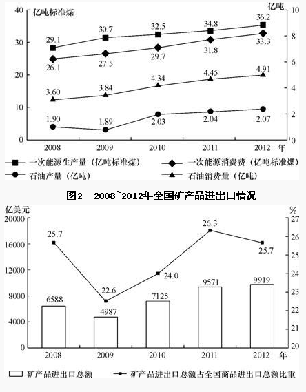 110.关于2009-2012年全国矿产品贸易和能源生产、消费,能够从上述资料中推出的是: