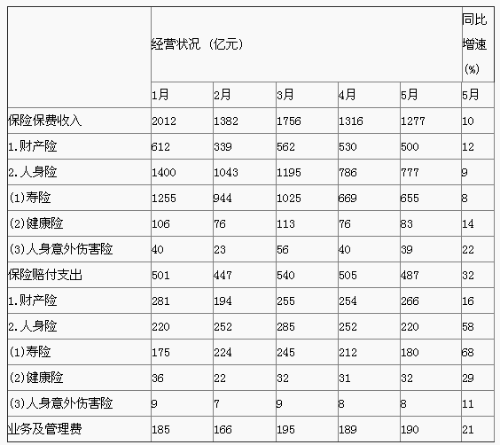 114.关于2013年1—5月保险业经营状况,能够从上述资料中推出的是: