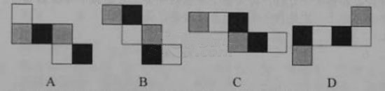 72.如用白、灰、黑三种颜色的油漆将正方体盒子的6个面上色,且两个相对面上的颜色都一样,以下哪一个不可能是该盒子外表面的展开图?