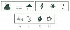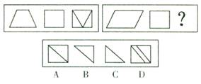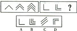 解答:从给出的左边四个图形分析,第一图形是一个向上直立的直线,后面几个图形中的直线逐渐向右倒,第五个图形的直线应该恰好倒下。因此,正确答案是D。