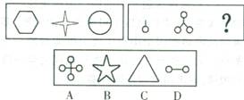 (一)每道包含两套图形和要供选择的四个图形。这两套图形具有某种相似性,也存在某种差异。要求你从四个选项中选择你认为最适合取代问号的一个。正确的答案就不仅使两套图形表现出最大的相似性,而且使第二套图形也表现出自己的特征。