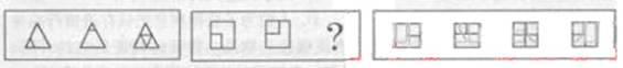 (一)每道题包含两套图形和可供选择的4个图形。这两套图形具有某种相似性,也存在某种差异。要求你从四个选项中选择你认为最适合的一个来取代问号。正确的答案应不仅使两套图形表现出最大的相似性,而且使第二套图形也表现出自己的特征。