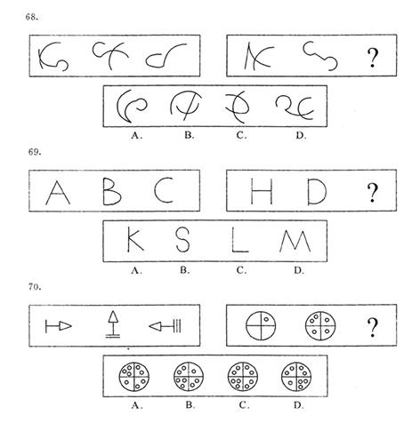 一、图形推理:共5题,每道题包含两套图形和可供选择的4个图形。这两套图形具有某种相似性,也存在某种差异。要求你从四个选项中选择你认为最适合取代问号的一个。正确的答案应不仅使两套图形表现出最大的相似性,而且使第二套图形也表现出自己的特征。