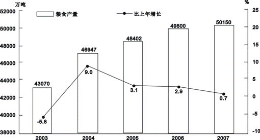 2003~2007年全国粮食产量及其增长速度统计图