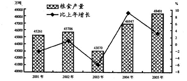 D.“十五”时期粮食产量年增长率最高的年份是2004年