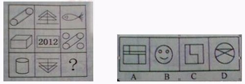 76.从所给的四个选项中,选择最合适的一个填入问号处,使之呈现一定的规律性。