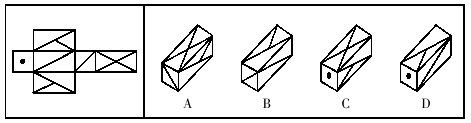 78.左边给定的是纸盒的外表面,下面哪一项能由它折叠面成?