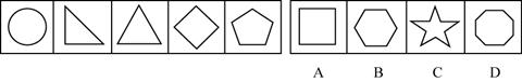 [二]每道题在左边的题干中给出一套图形,其中包括五个图,这五个图形呈现一定的规律性。在右边给出一套图,其中有四个图,让考生从中选出一个作为保持左边五个图规律性的第六个图。