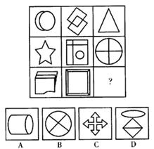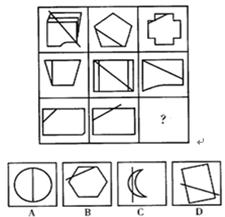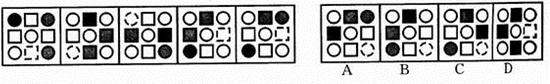 (一)每道题在左边的题干中给出一套图形,其中包括五个图,这五个图形虽现一定的规律性。在右边给出一套图,其中有四个图,从中选出一个作为保持左边五个图规律性的第六个图。