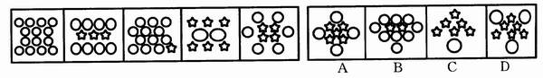 【解答】正确答案为A。左边图形中1个小星形相当于2个小圆形,通过换算,左边每格中均为14人小圆形。