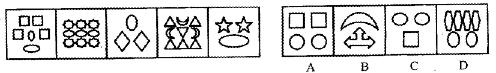 (—)每道题在左边的题干中给出一套图形,其中包括五个图,这五个图形呈现一定的规律性。在右边给出一套图,其中有四个图,从中选出唯一的一项作为保持左边五个图规律性的第六个图。