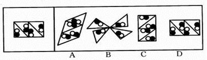 (二)请从右边的四个备选图形中,选择唯一的一个,以保证该图形的组成元素与左边图形的组成元素完全相同。注意:每个图形的组成元素不重叠。