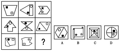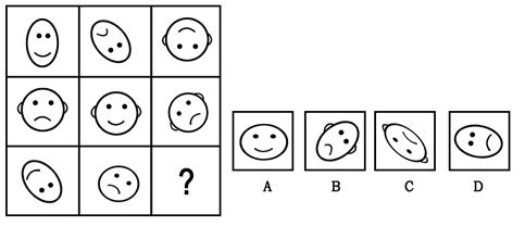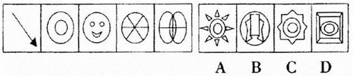(一)每道题在左边的题干中给出一套图形,其中包括五个图,这五个图形呈现一定的规律性。在右边给出一套图,其中有四个图,从中选出惟一的一项作为保持左边五个图规律性的第六个图。