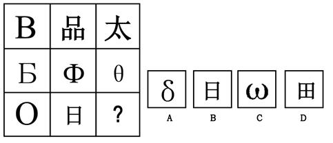 [二]请从所给的四个选择项中,选择惟一的一个答案填在问号处,使之呈现一定的规律性。