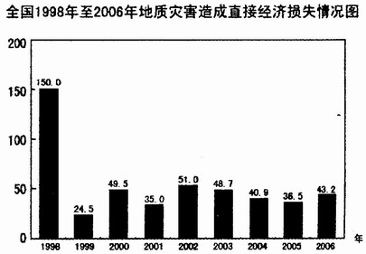 102.1999年至2006年期间,地质灾害造成的最大直接经济损失比最小直接经济损失多( )
